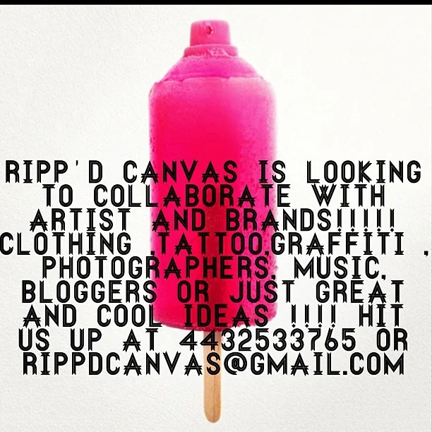 Ripp’d Canvas is looking to collaborate with ARTIST and BRANDS!!!!! Clothing ,Tattoo,Graffiti ,Photographers, Music, Bloggers or just great and cool ideas !!!! Hit us up at 4432533765 or Rippdcanvas@gmail.com  #bmore #baltimore #dmv #graf…