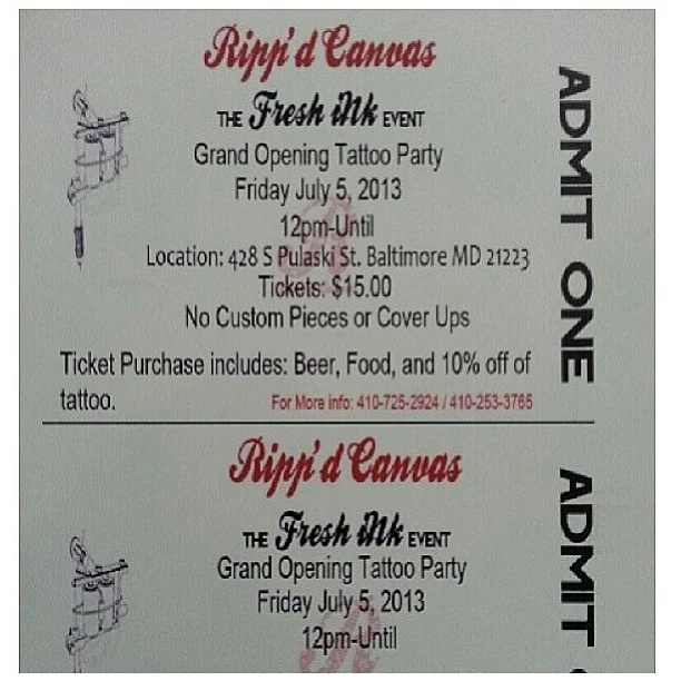 Tickets available NOW!!! Grand opening JULY 5 2013 #building #inspiration #tattooshop #tattoo #social #club #cool #art #artist #artgallery #gallery #tattoostudio #magazine #urban #bmore #baltimore #rippdcanvas #street #art #graffiti #baltimoregraffiti #bmoregraffiti #streetart #baltimorestreetart Domonic Carter June 17, 2013